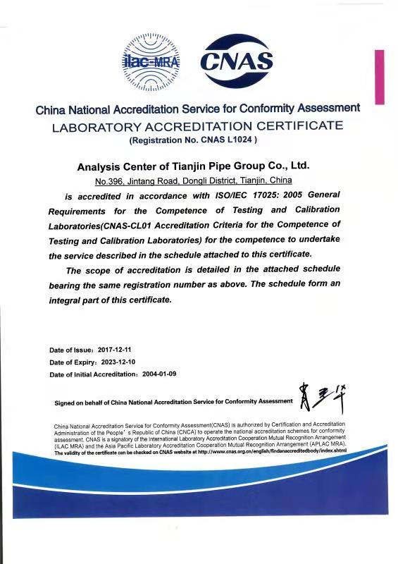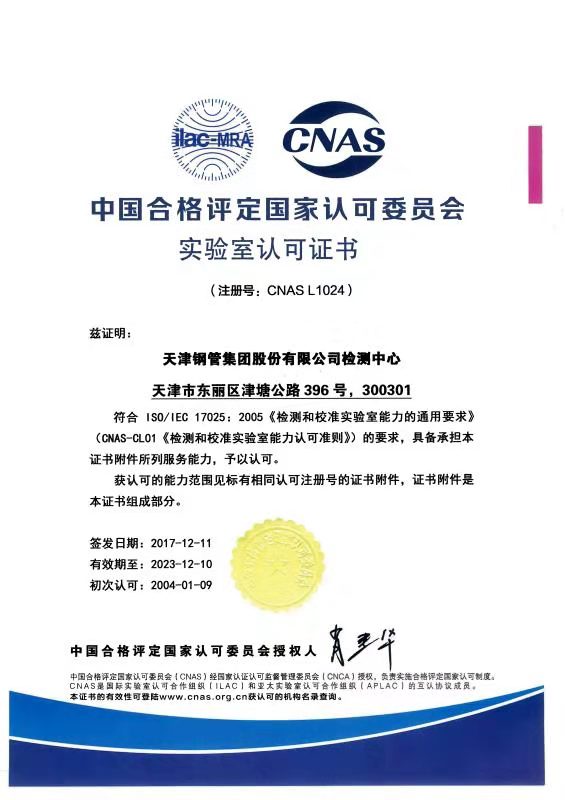 CNAS證書就是企業(yè)出具的材質(zhì)單得到國(guó)家評(píng)定認(rèn)可,檢測(cè)設(shè)備,以及檢測(cè)結(jié)果完全標(biāo)準(zhǔn)的一個(gè)證明,這個(gè)知識(shí)可以提醒你所買的無縫鋼管是不是廠家出局的證明有效,和屬實(shí)的材料證明,天津鋼管集團(tuán)股份有限公司的天津大無縫鋼管廠出具的材質(zhì)單完全符合材料的各項(xiàng)元素化驗(yàn)。天津無縫鋼管廠報(bào)道www.www.wineland.net.cn